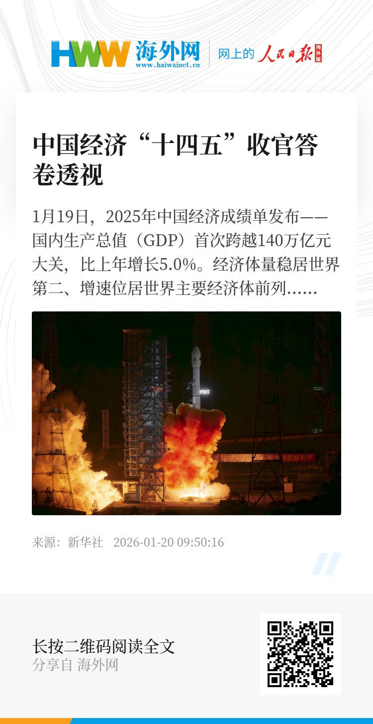 经济体量稳居世界第二、增速位居世界主要经济体前列、“十四五”年均增速远超世界平均水平……一系列指标清晰勾勒出中国作为超大规模经济体稳健前行的坚实轨迹。