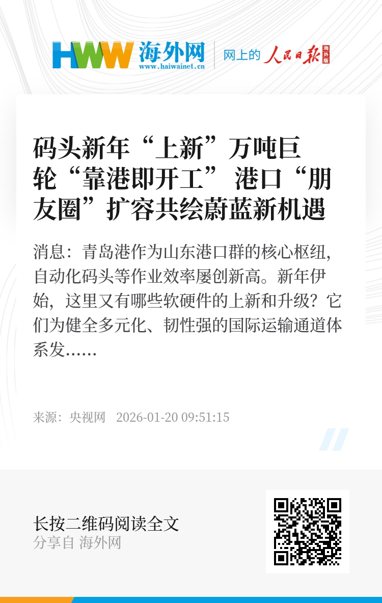 央视网消息:青岛港作为山东港口群的核心枢纽,自动化码头等作业效率屡创新高。新年伊始,这里又有哪些软硬件的上新和升级?它们为健全多元化、韧性强的国际运输通道体系发挥什么作用?