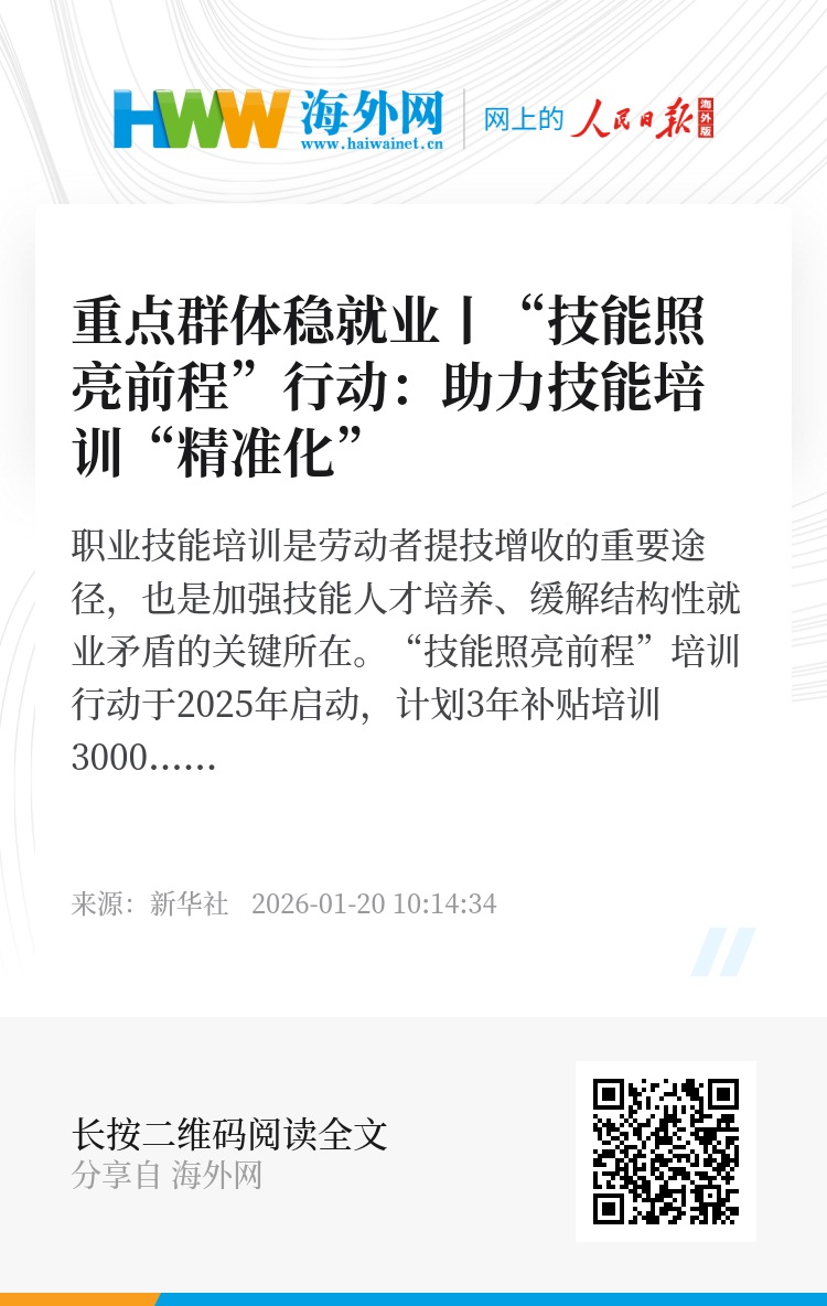 “技能照亮前程”培训行动于2025年启动,计划3年补贴培训3000万人次,面向农民工、离校未就业高校毕业生等群体,推出数字人才、先进制造、养老护理、家政服务等培训。