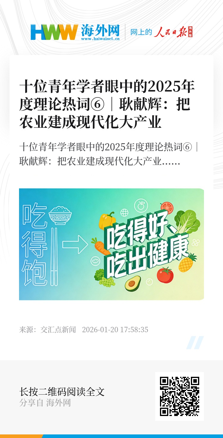 十位青年学者眼中的2025年度理论热词⑥|耿献辉:把农业建成现代化大产业