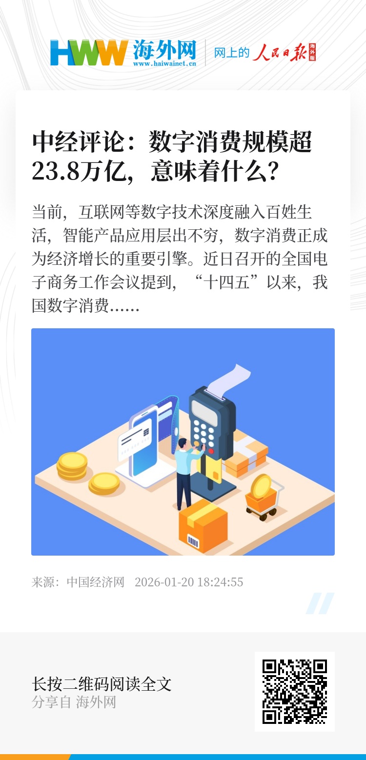 当前,互联网等数字技术深度融入百姓生活,智能产品应用层出不穷,数字消费正成为经济增长的重要引擎。近日召开的全国电子商务工作会议提到,“十四五”以来,我国数字消费整体规模超23.8万亿元,连续13年位居全球最大网络零售市场。这样的数据,意味着什么?
