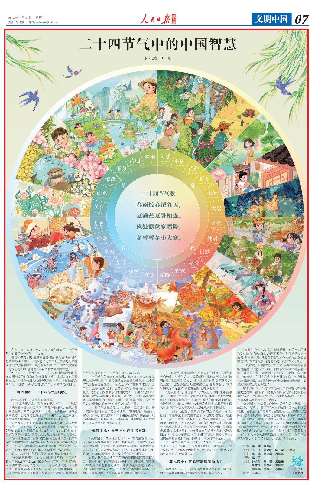 2016年,“二十四节气——中国人通过观察太阳周年运动而形成的时间知识体系及其实践”被列入联合国教科文组织人类非物质文化遗产代表作名录。“时间知识体系”与“实践”,成为我们认识节气、读懂节气的注脚。