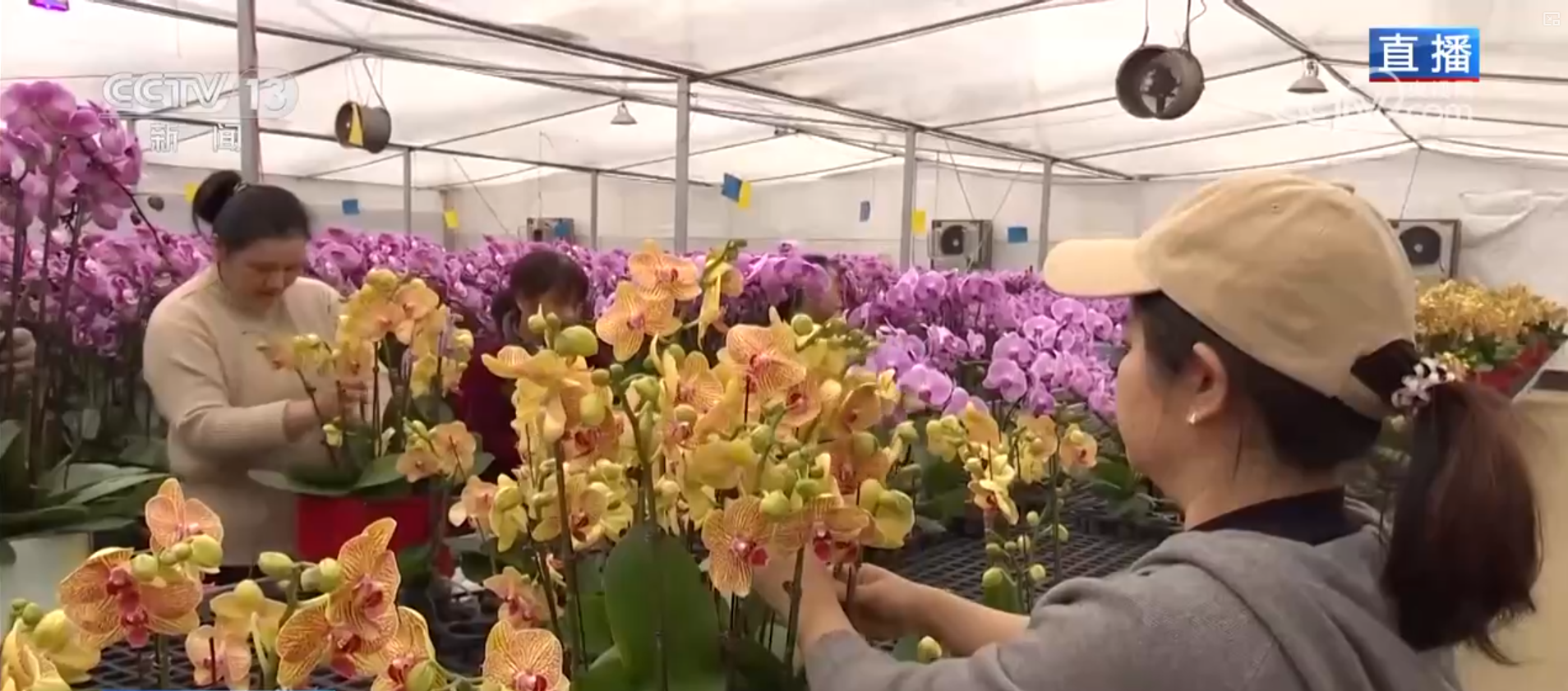 特别是这段时间开始进入销售旺季,订单多到忙不过来。这也带动了叫“花娘”的职业。在销售旺季前,传化花园中心会组织村民参加免费的蝴蝶兰养护、组盆培训,考核合格后就可以上岗成为“花娘”。在旁边的设施大棚里,“花娘”们正手法娴熟地将不同品种的蝴蝶兰搭配入盆,平均一天有五六百元以上的收入。
