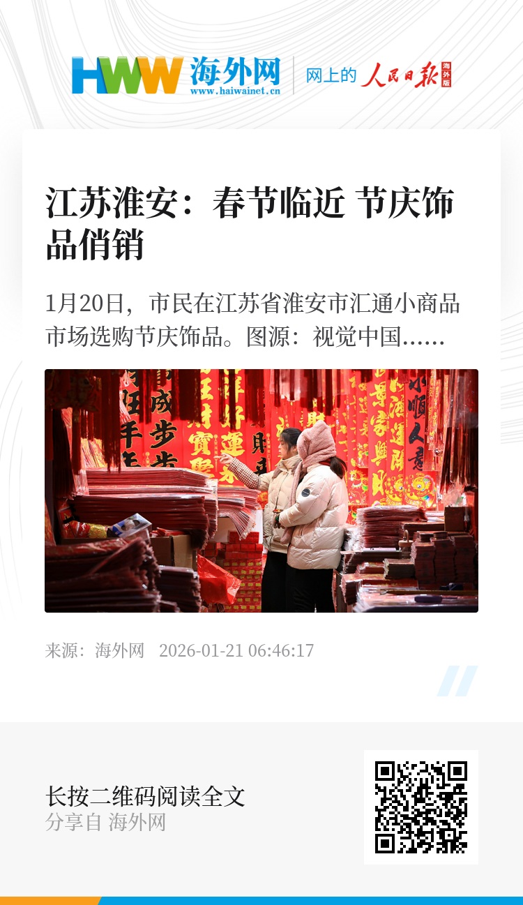 32925080,.江苏淮安:春节临近 节庆饰品俏销,.2026-01-21 06:46:17,.204441,.张荣耀、李萌