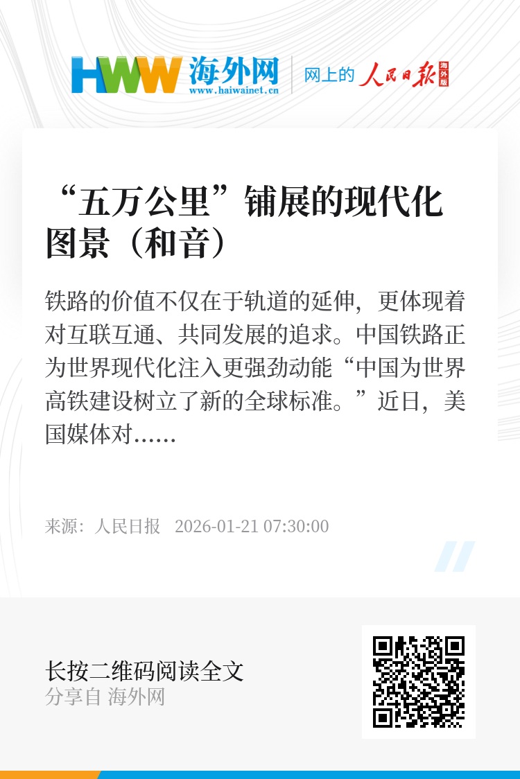中国成果,世界共享。把蓝图变为现实,将愿景化为实景,延展的不仅是神州大地的高铁里程,更是惠及全球的“中国标准”与“发展快车”。这深刻表明:中国不仅拥有擘画长远的规划力与说到做到的执行力,更始终秉持开放包容、互利共赢的理念,不断为构建人类命运共同体注入澎湃动能。