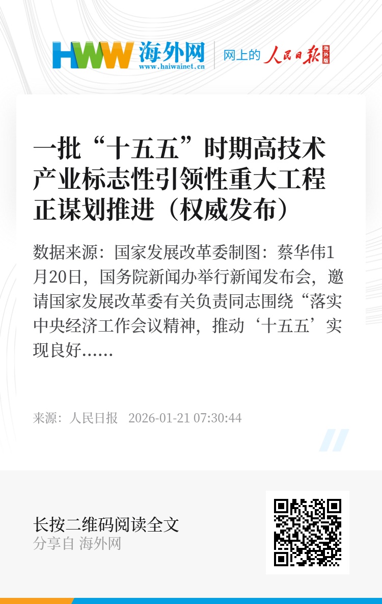 新技术新产品新场景蔚然成势。新能源、新材料、航空航天、量子科技、生物制造、具身智能等新的经济增长点蓄势待发,新型储能装机规模超1亿千瓦、占全球比重超40%。人工智能加速从数字世界走向物理世界,将带动高端制造、新兴消费、新业态新模式爆发式增长。2025年,高技术制造业增加值占规模以上工业增加值比重超17%。一批“十五五”时期的高技术产业标志性引领性重大工程正在谋划推进。