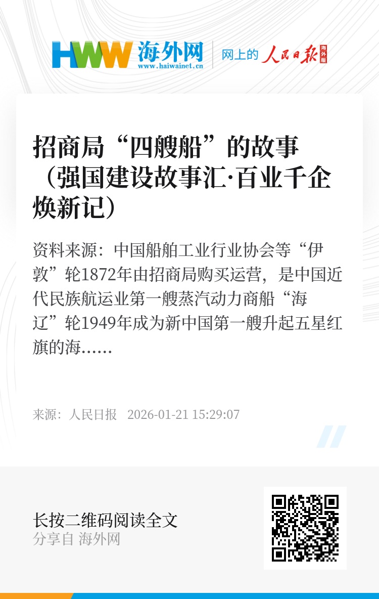 在招商局采访,“四艘船”的故事令人印象深刻:中国近代民族航运史上的第一艘现代商轮“伊敦”轮,新中国第一艘升起五星红旗的海轮“海辽”轮,邓小平同志为其亲笔题写“海上世界”的“明华”轮,全球首艘应用碳纤维硬质翼型风帆的超大型油轮“新伊敦”轮……不同时期的四艘船,铭刻下百年招商局的发展历程,也见证着中华民族从落后时代、跟上时代再到引领时代的伟大跨越。