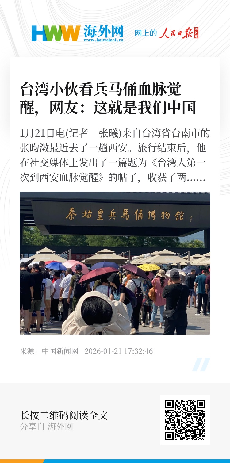 旅行结束后,他在社交媒体上发出了一篇题为《台湾人第一次到西安血脉觉醒》的帖子,收获了两岸网友如潮的点赞与共鸣。