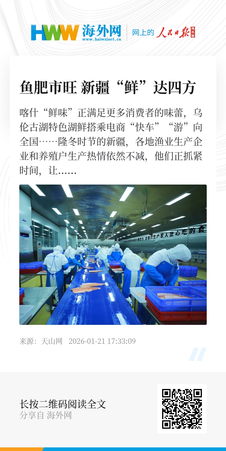 喀什“鲜味”正满足更多消费者的味蕾,乌伦古湖特色湖鲜搭乘电商“快车”“游”向全国……隆冬时节的新疆,各地渔业生产企业和养殖户生产热情依然不减,他们正抓紧时间,让一条条鲜鱼快速进入市场,走上百姓餐桌。