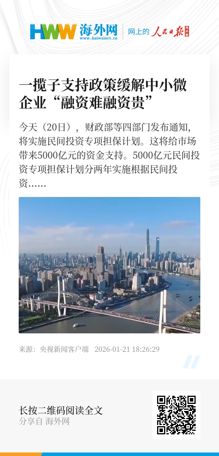 中央财经大学国家财经战略研究院中国经济研究中心主任 袁东:去年的中央经济工作会议和二十届四中全会,特别要求要提高宏观经济管理效能,要确保宏观经济政策取向一致性,而且要提升宏观经济政策效果的评价。财政政策和货币金融政策作为国家宏观经济政策的两个主要的工具,在贯彻中央这一系列要求方面是至关重要的。民间投资担保计划,是财政金融协同很好的一个创新,很好的机制。对于增加投资,增加就业,稳经济增长乃至提升经济增长会起到比较好的作用。
