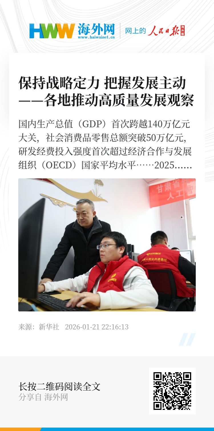 欧洲《现代外交》杂志网站刊文指出,随着中国促进形成更多由内需主导的经济发展模式,2026年中国经济将在高科技、智能制造、绿色能源和服务消费等领域实现显著增长。