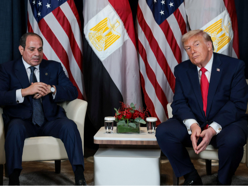 谈及加沙地带问题,特朗普警告称,如果哈马斯不放下武器,将会被“清除”。(央视记者 曹健)