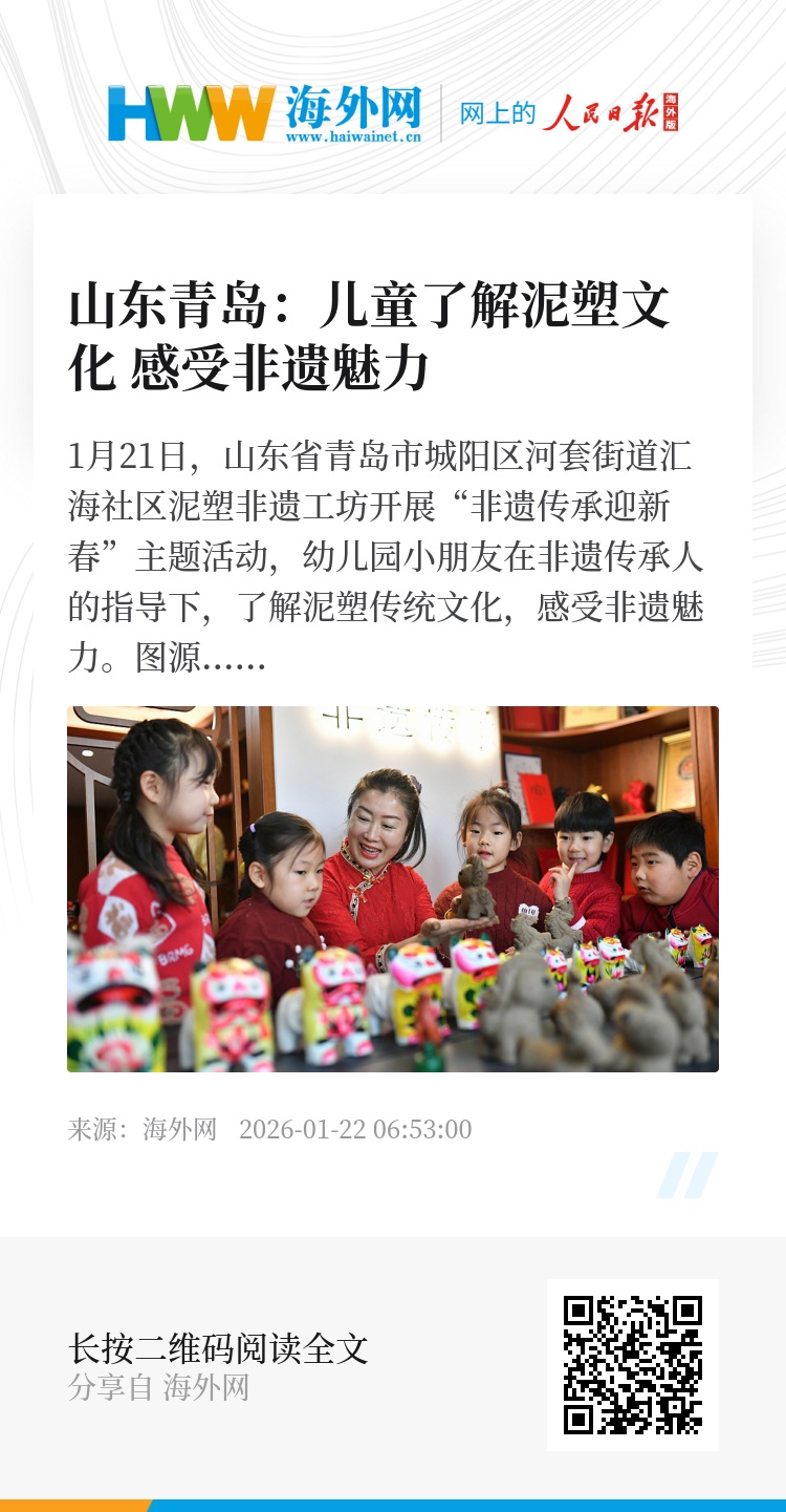 32925365,.山东青岛:儿童了解泥塑文化 感受非遗魅力,.2026-01-22 06:53:00,.204441,.张荣耀、李萌