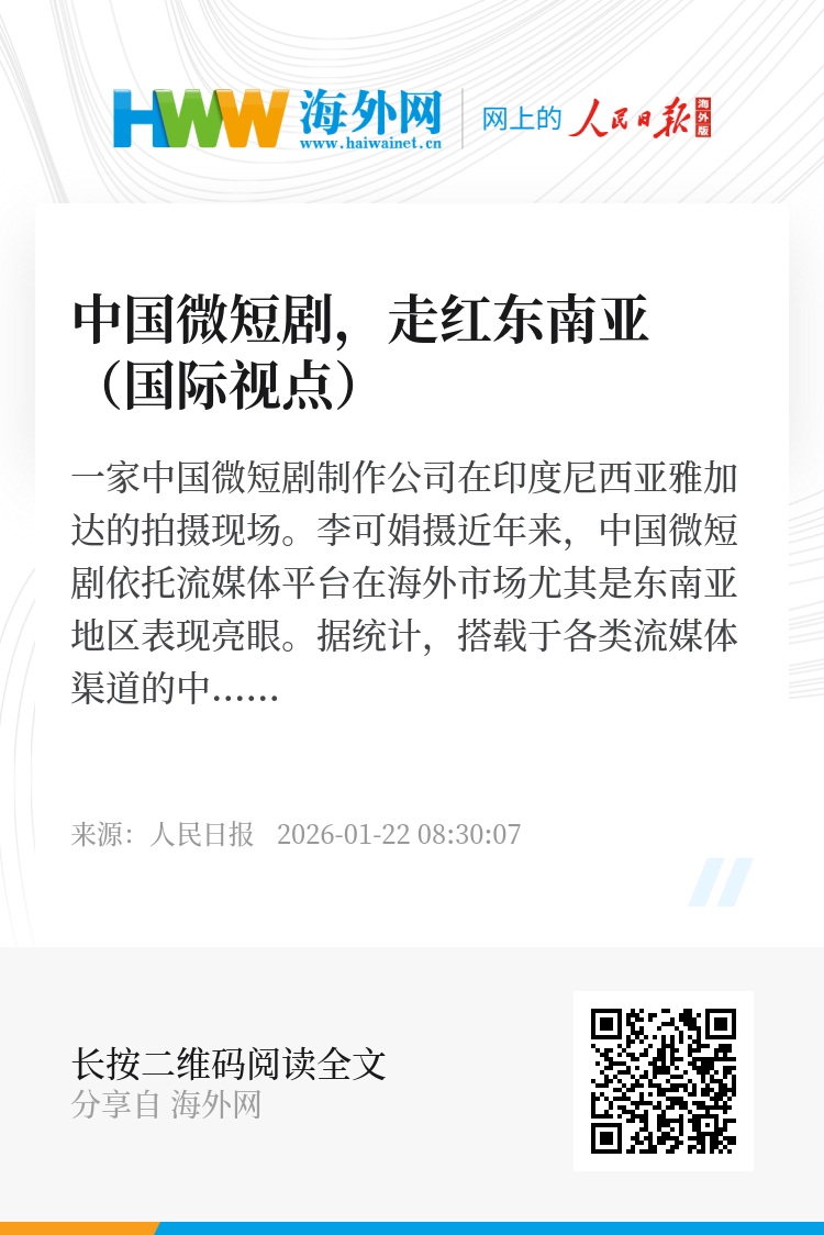 “中国微短剧中的情节设定,契合了东南亚民众对公平、希望与美好生活的向往,很容易引发情感共鸣。”印尼三一一大学社会学家德拉贾特·卡托诺分析,观众在观看剧情的同时,也在接受剧中传递的积极价值理念,“这类贴近现实、契合大众心理期待的内容,往往能突破文化差异,获得广泛认同”。