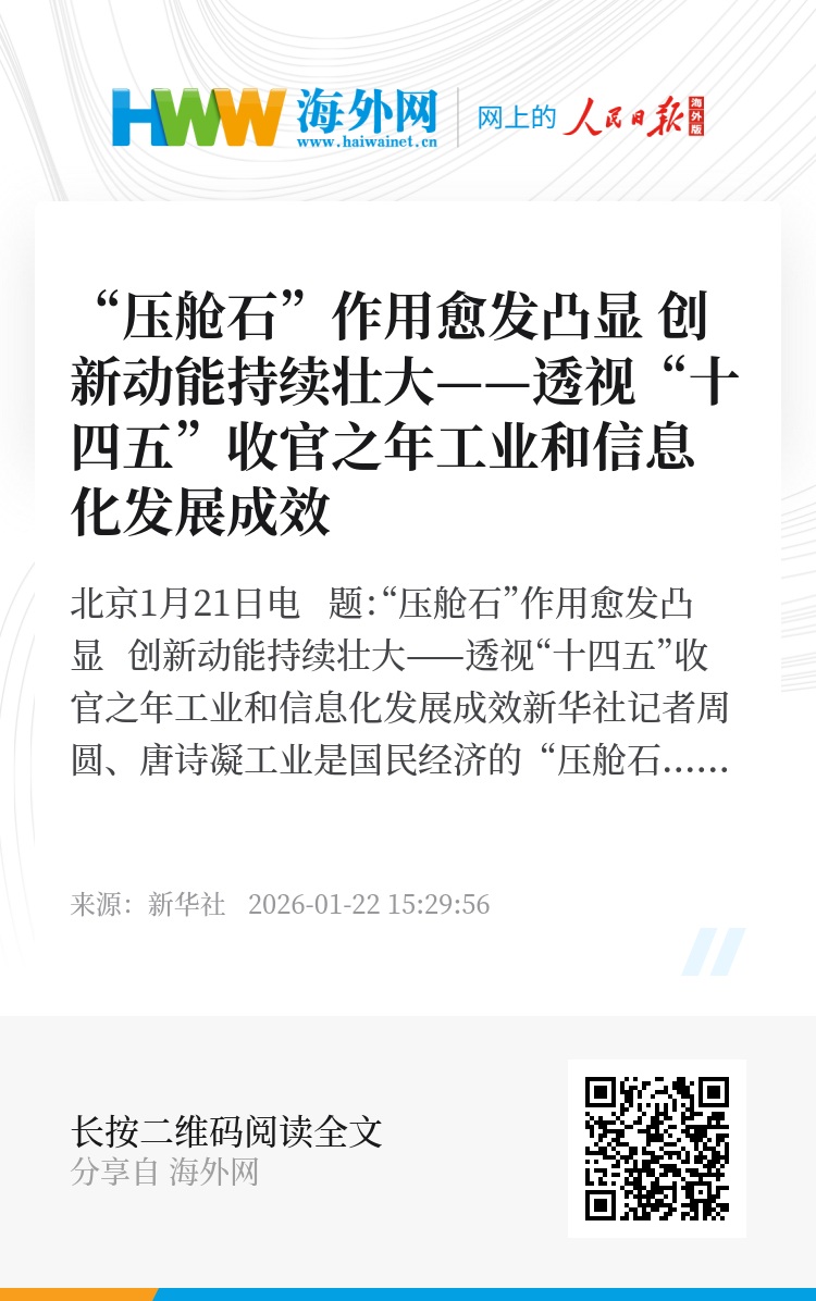 新华社北京1月21日电 题:“压舱石”作用愈发凸显 创新动能持续壮大——透视“十四五”收官之年工业和信息化发展成效