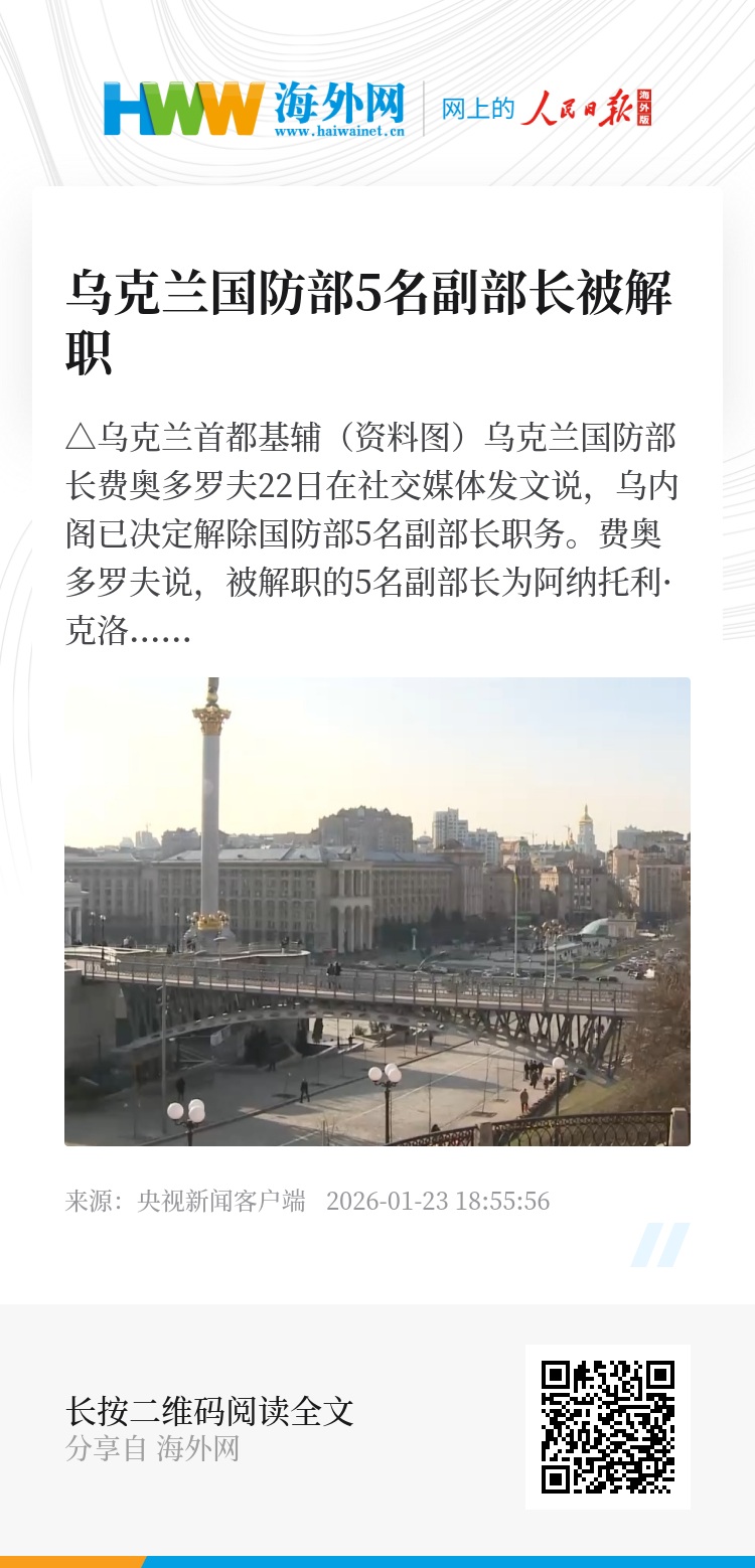 乌克兰国防部长费奥多罗夫22日在社交媒体发文说,乌内阁已决定解除国防部5名副部长职务。