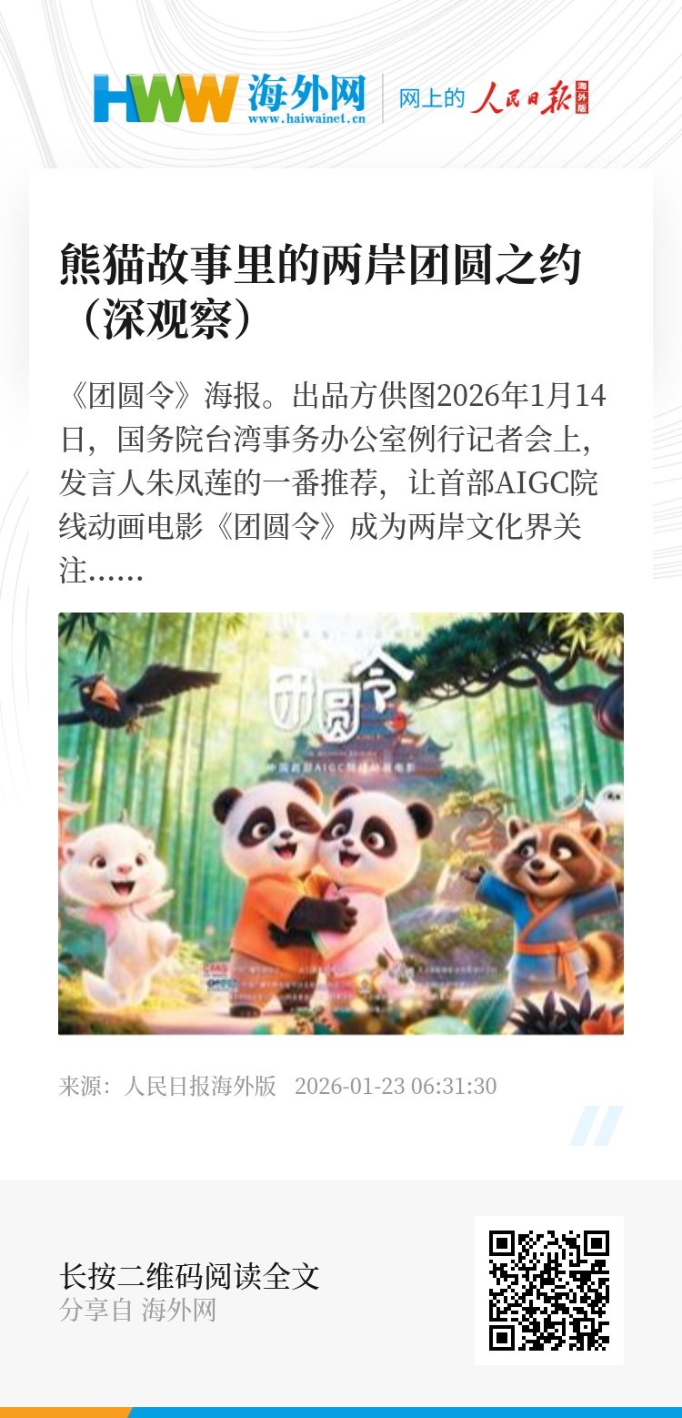 2026年1月14日,国务院台湾事务办公室例行记者会上,发言人朱凤莲的一番推荐,让首部AIGC院线动画电影《团圆令》成为两岸文化界关注的焦点。