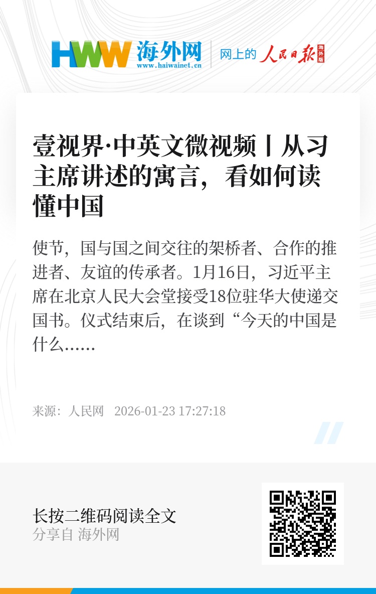 1月16日,习近平主席在北京人民大会堂接受18位驻华大使递交国书。仪式结束后,在谈到“今天的中国是什么样子”时,习近平主席对新任驻华使节们讲起“盲人摸象”的寓言故事——
