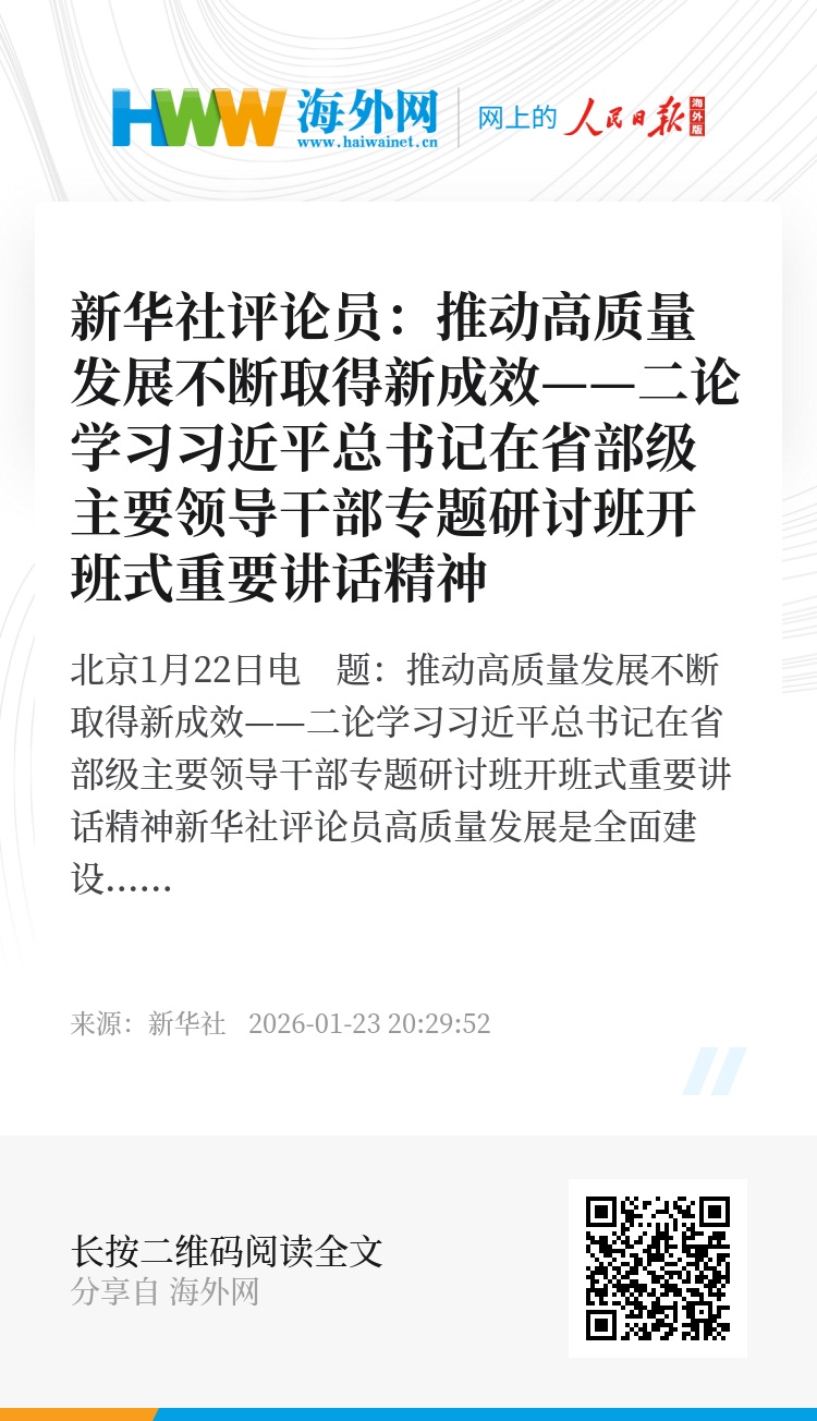 新华社北京1月22日电 题:推动高质量发展不断取得新成效——二论学习习近平总书记在省部级主要领导干部专题研讨班开班式重要讲话精神