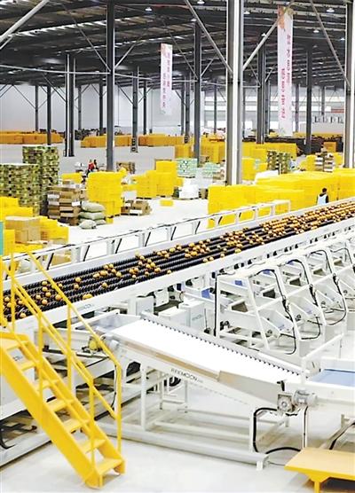 富川电商产业园脐橙分拣线。