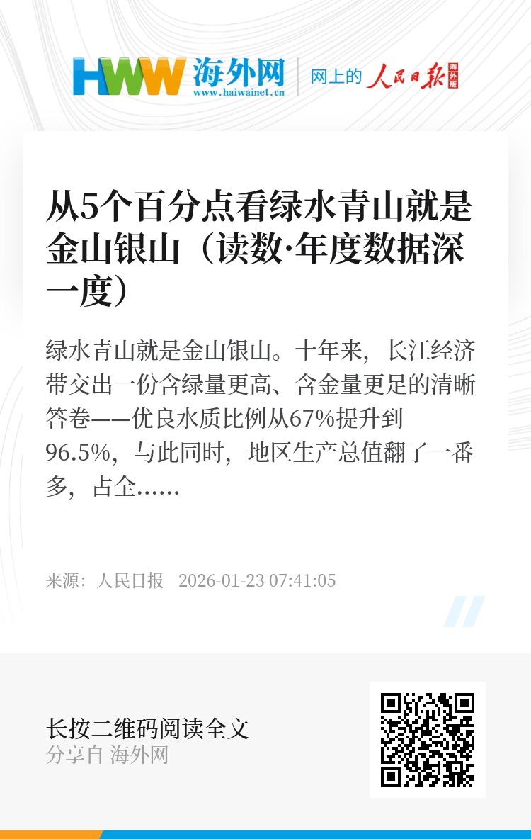 绿水青山就是金山银山。十年来,长江经济带交出一份含绿量更高、含金量更足的清晰答卷——