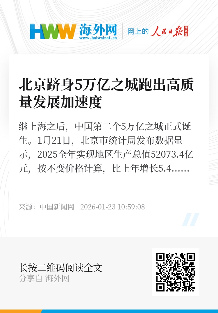 5万亿不是终点,而是新起点。“十五五”开局之年,北京正全力冲刺开门红。