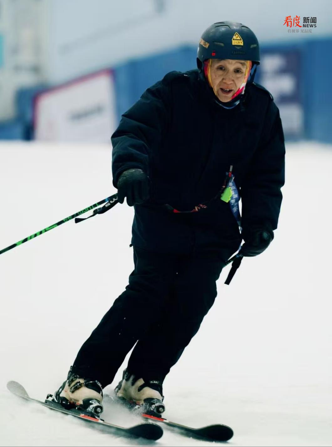在8.08万平方米的恒温雪域中,七十五岁的钟铀正在一条雪道起点熟练检查雪板。退休后,他将这里当作新的“单位”,几乎每日报到,是雪场公认的“明星”。从蹒跚学步到在中高级道上自如回转,滑雪不仅赋予他强健体魄,更点燃了他新的生活热情。“滑雪需要反复练习,学会就容易上瘾,技术越熟越爱滑。”在他的带动下,女儿、女婿相继“入坑”,小孙女也成为儿童雪道上可爱的“小雪友”。作为敏锐的观察者,钟爷爷见证了成都冰雪氛围的逐步升温:“在南方城市里,成都的滑雪氛围很好。我们有旱雪基础,还有室内大雪场,群众基础就更扎实了。”