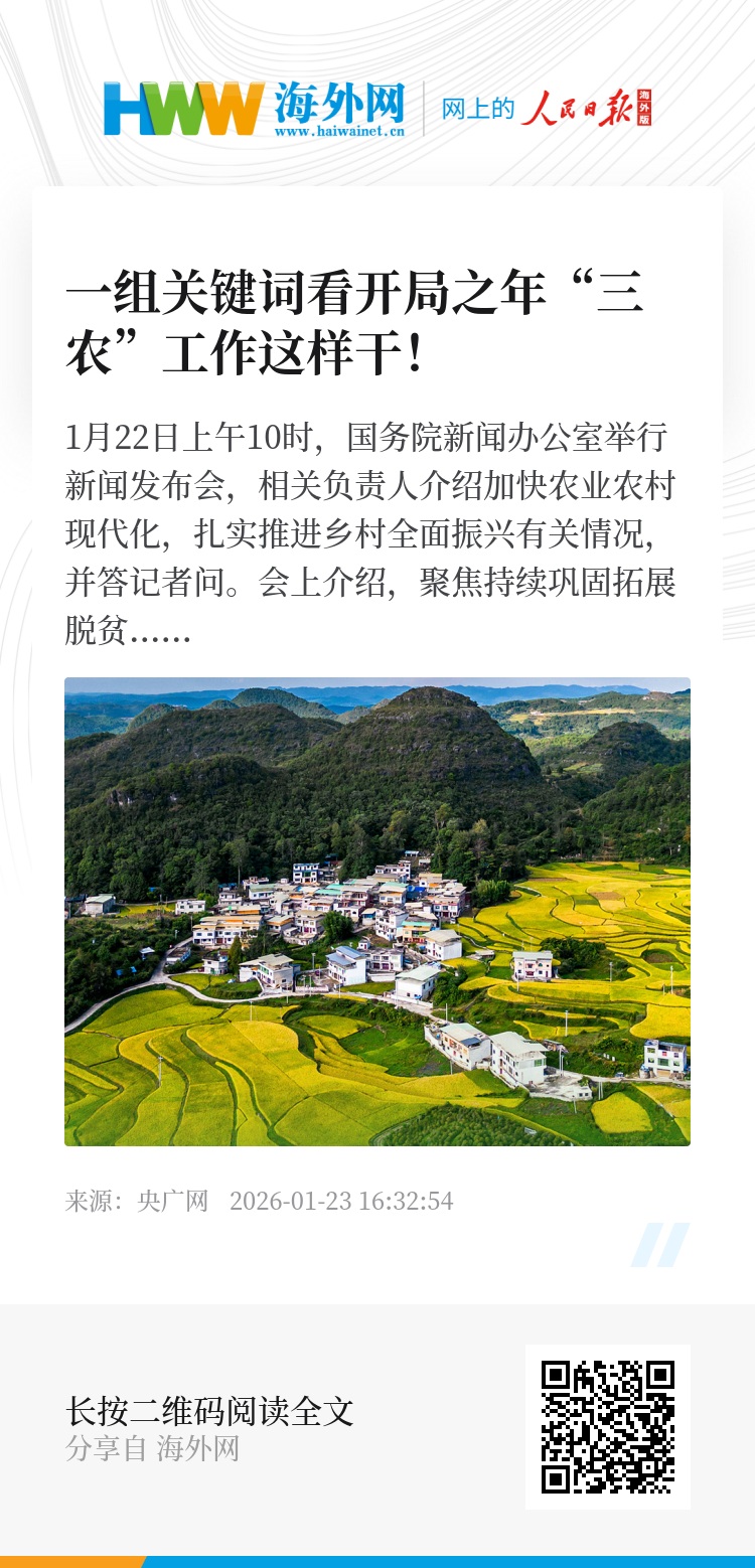 1月22日上午10时,国务院新闻办公室举行新闻发布会,相关负责人介绍加快农业农村现代化,扎实推进乡村全面振兴有关情况,并答记者问。会上介绍,聚焦持续巩固拓展脱贫攻坚成果,实施常态化精准帮扶,用好第三次全国土壤普查成果……戳图!一组关键词看开局之年“三农”工作这样干!