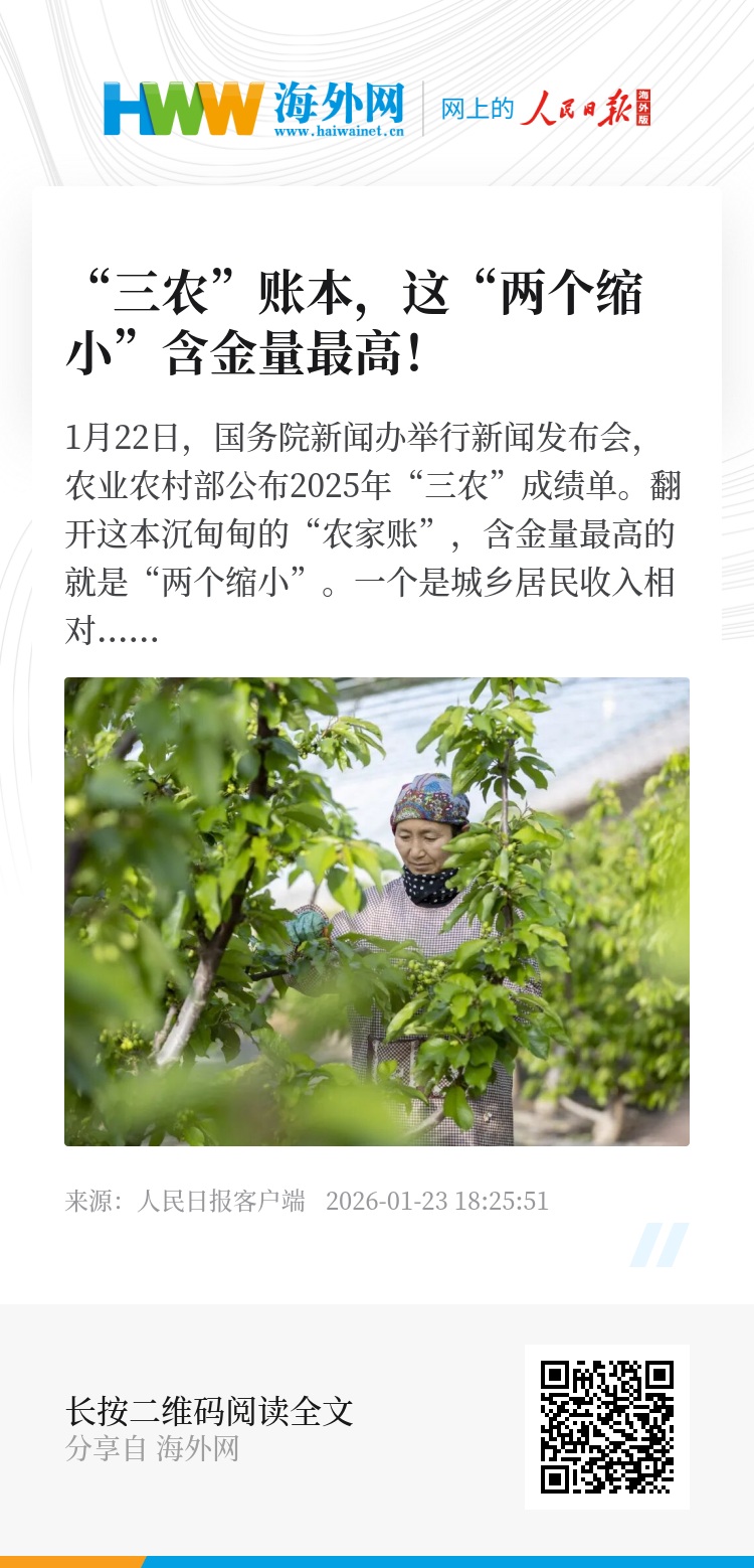 1月22日,国务院新闻办举行新闻发布会,农业农村部公布2025年“三农”成绩单。翻开这本沉甸甸的“农家账”,含金量最高的就是“两个缩小”。