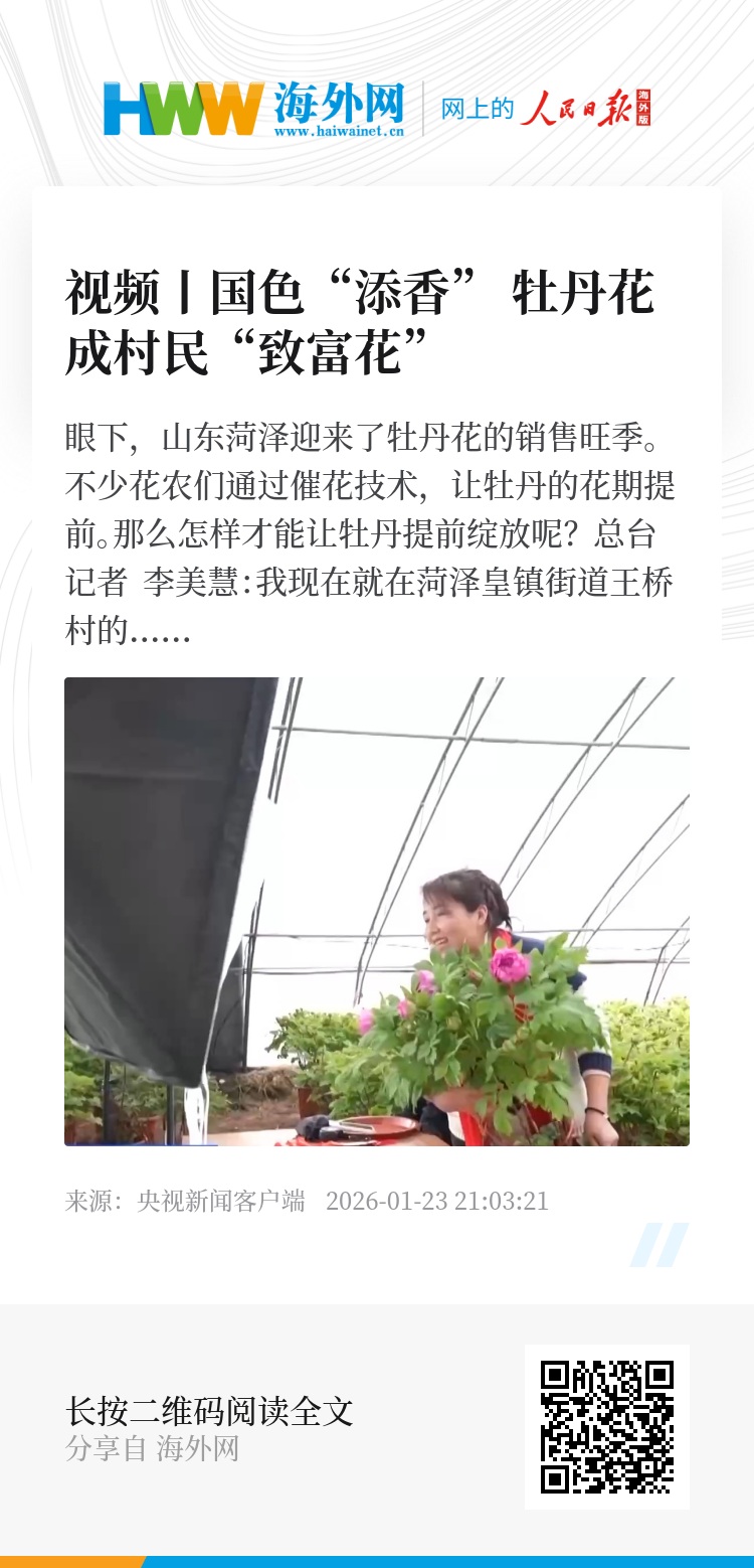 今年,王桥村年宵花的销售额预计达到360万元,直接带动200多个就业岗位。从菏泽全市来看,2025年,菏泽市催花牡丹销量达60万盆,占国内销售市场的60%以上。年宵花还只是菏泽牡丹产业中的一部分,菏泽已经形成了牡丹培育种植、生产加工、销售的完整产业链,去年,牡丹产业产值突破130亿元。
