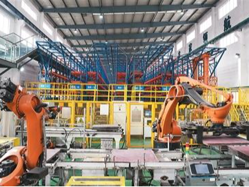 位于江西省的江铜集团贵溪冶炼厂智能化电解车间内,机器臂进行铜板转运作业。新华社记者 万 象摄