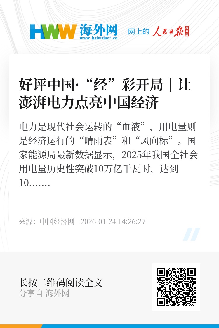 “十五五”规划建议提出,“着力构建新型电力系统”“全面提升电力系统互补互济和安全韧性水平”。新型电力系统对电力市场建设提出了更高要求,不仅要在技术上不断创新,更需在市场机制上勇于突破。不断把改革向纵深推进,源源不断的澎湃电力,将更好赋能中国经济,点亮光明前景。(中国经济网评论员 邓浩)