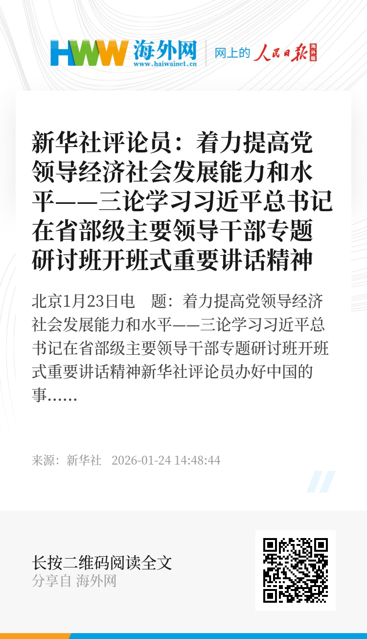 新华社北京1月23日电 题:着力提高党领导经济社会发展能力和水平——三论学习习近平总书记在省部级主要领导干部专题研讨班开班式重要讲话精神