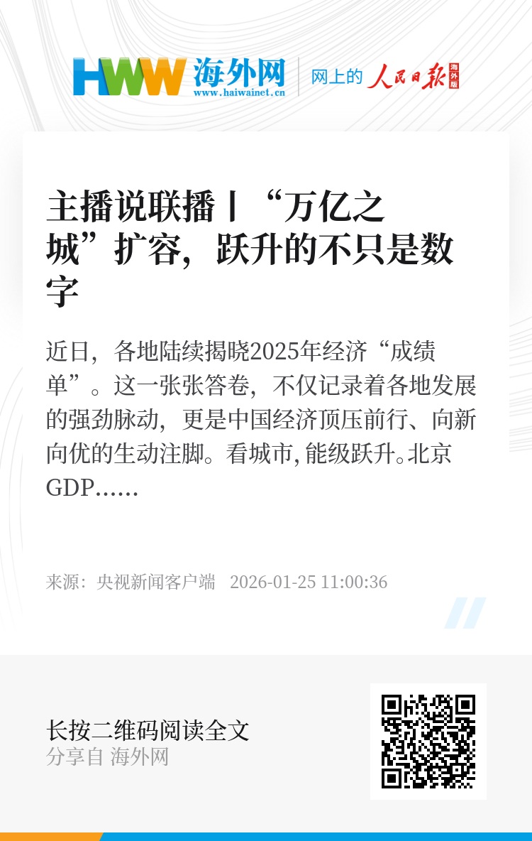 近日,各地陆续揭晓2025年经济“成绩单”。这一张张答卷,不仅记录着各地发展的强劲脉动,更是中国经济顶压前行、向新向优的生动注脚。