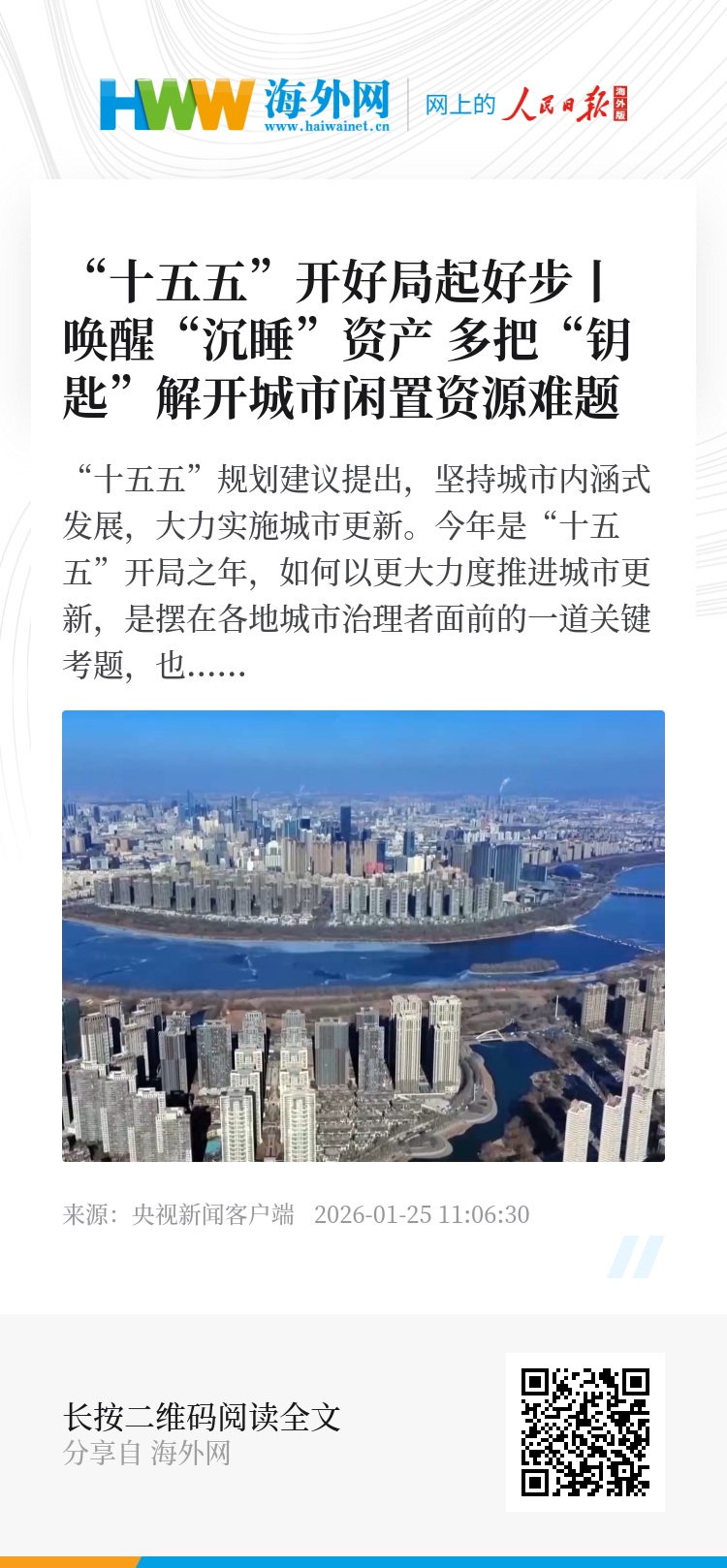 “十五五”规划建议提出,坚持城市内涵式发展,大力实施城市更新。今年是“十五五”开局之年,如何以更大力度推进城市更新,是摆在各地城市治理者面前的一道关键考题,也是关乎民生福祉、城市韧性与经济动能的重要课题。