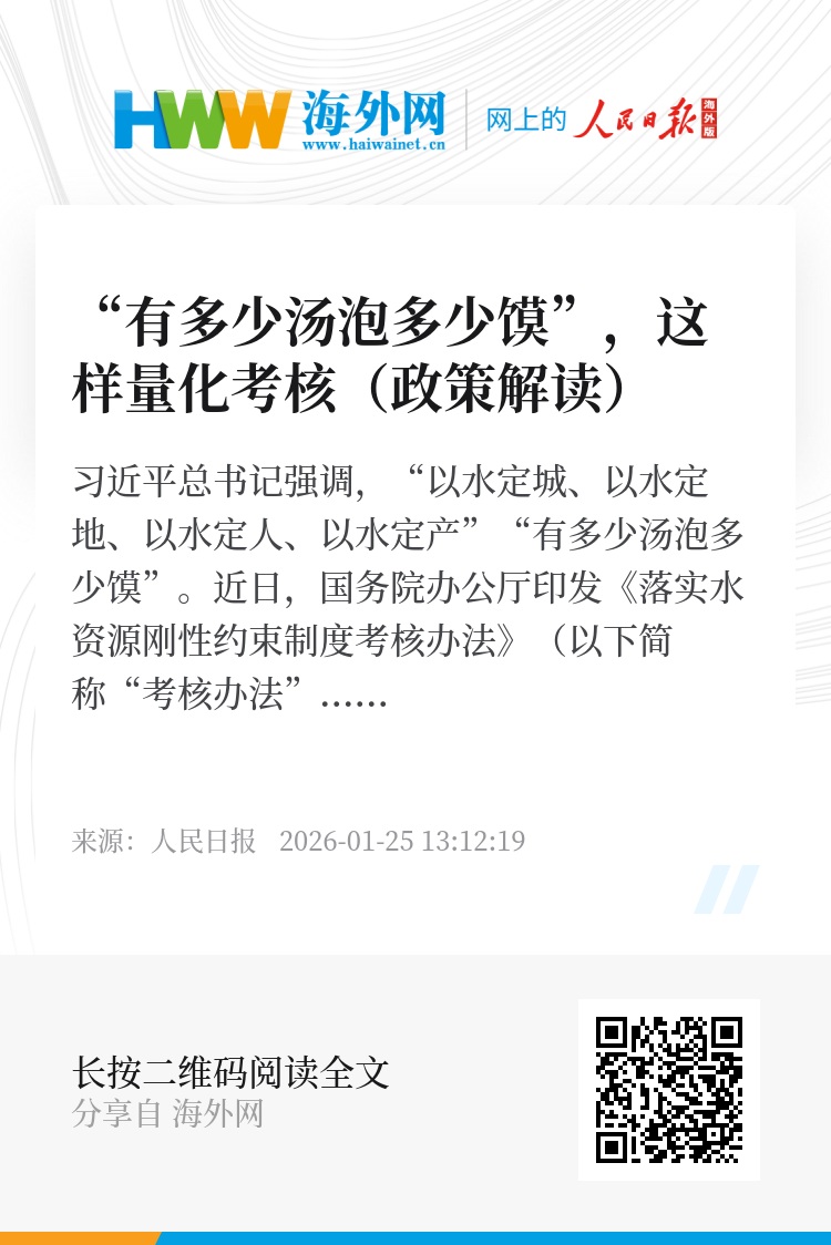 “2026年,各省(自治区、直辖市)将按照考核办法落实有关工作,水利部将会同有关部门制定2026年度落实水资源刚性约束制度考核方案,组织做好2026年度考核工作。”马超介绍。