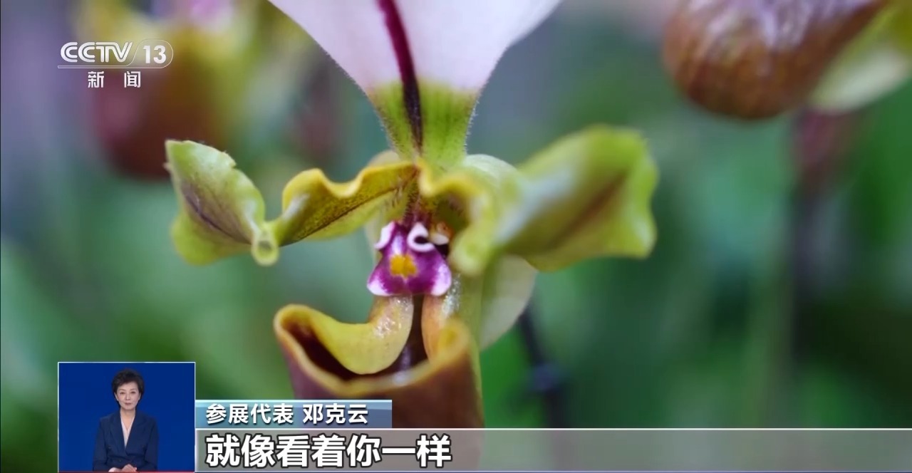 参展代表 邓克云:白旗兜兰,“小青蛙”等于它好听的艺名。它的假雄蕊,看着就像一个青蛙趴在田边上,两个眼睛鼓鼓的,就像看着你一样。