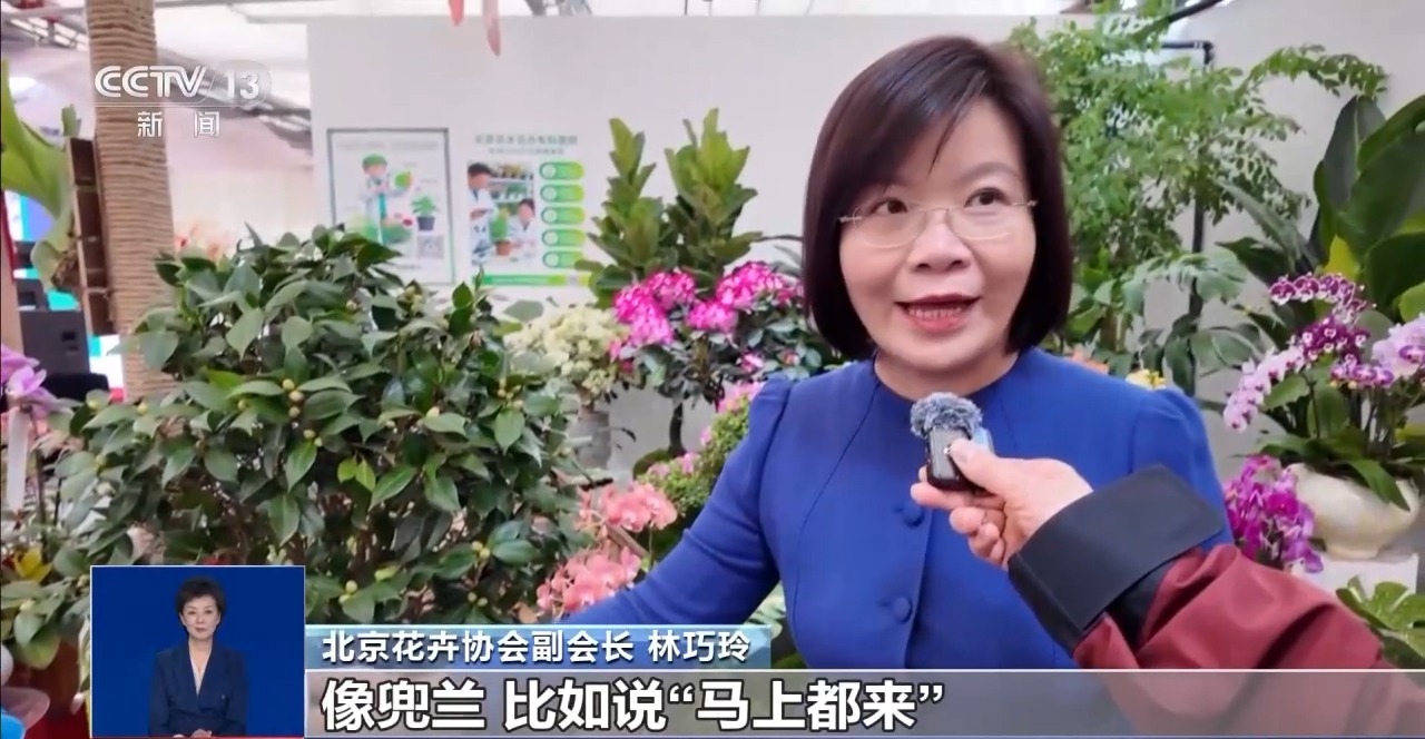 北京花卉协会副会长 林巧玲:马年推出马主题花器,同时配合不同的花材,像兜兰,比如说“马上都来”“幸福都来”“快乐都来”。富贵子,红色配非常好看和吉祥,“马上富贵”又很吉祥。