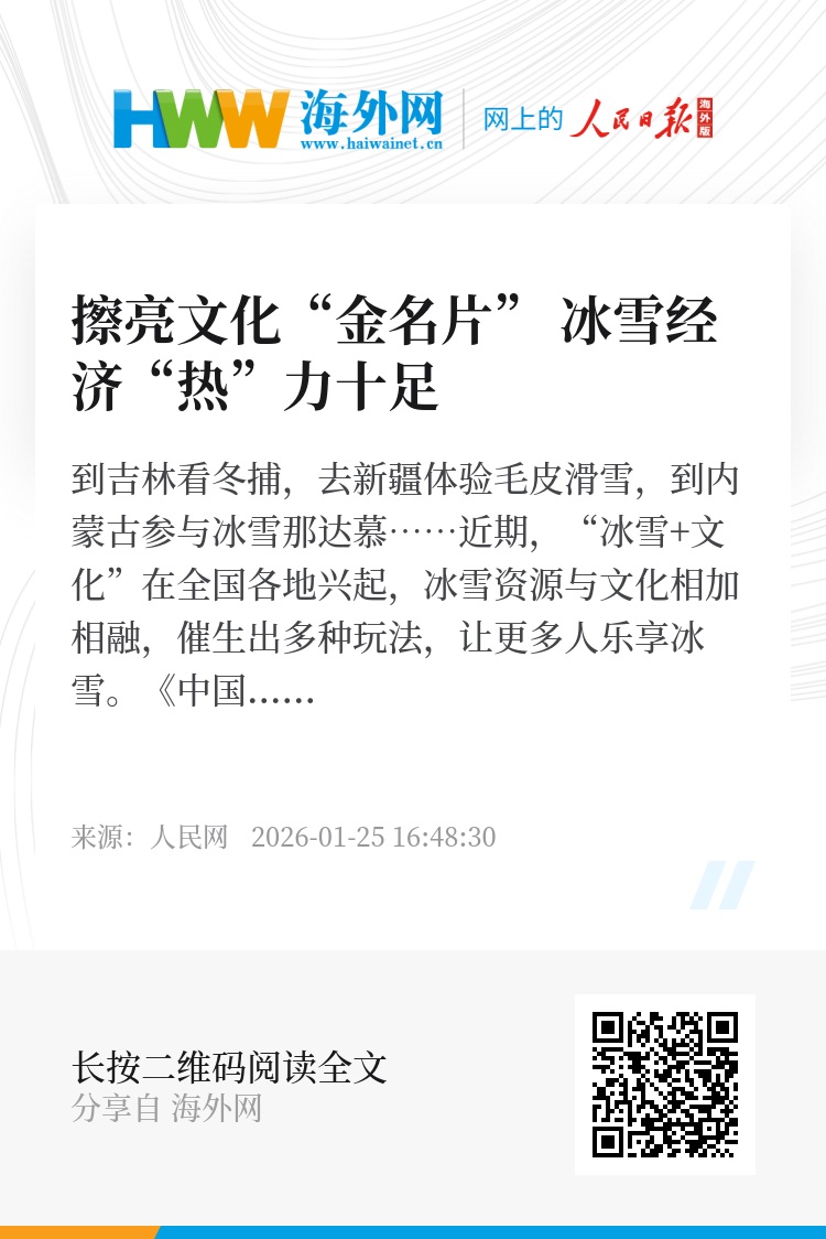 三是强化文化营销传播,提升品牌影响力。运用短视频、网络直播等新媒体手段,结合赛事IP,讲好中国冰雪文化故事;同时推动“交通+旅游”融合,完善配套服务标准,提升消费体验。(人民网记者 王绍绍)