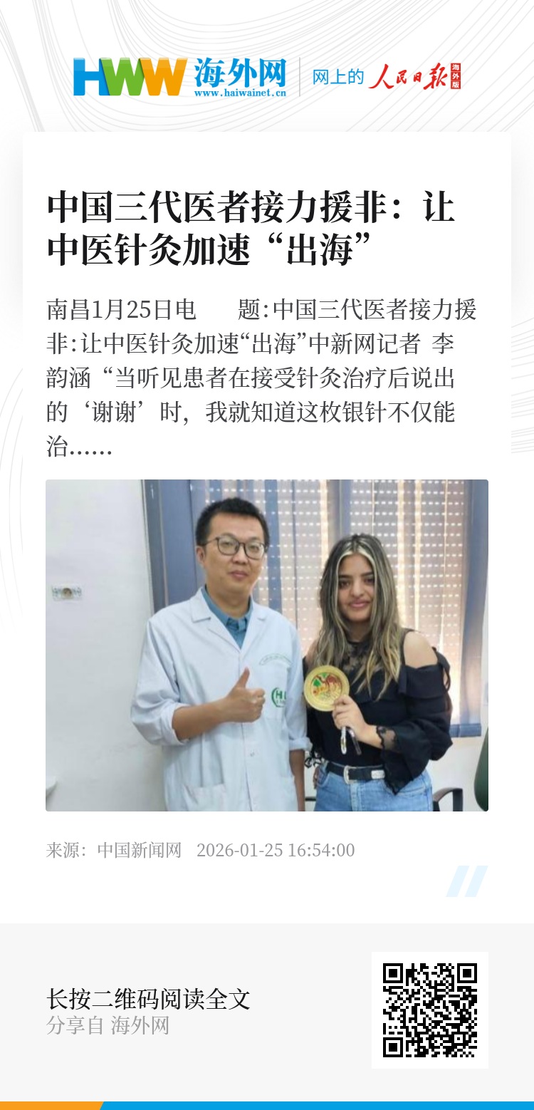 中新网南昌1月25日电 题:中国三代医者接力援非:让中医针灸加速“出海”