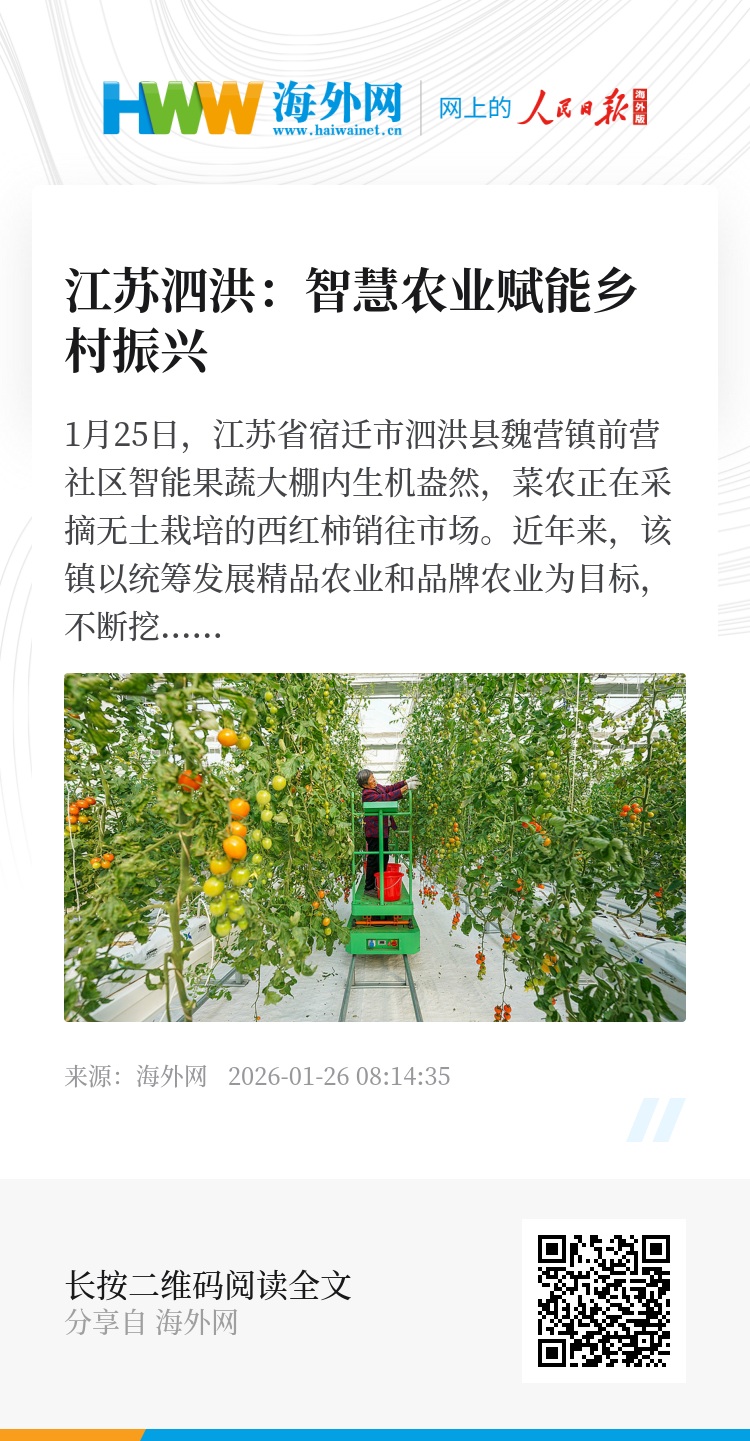 1月25日,江苏省宿迁市泗洪县魏营镇前营社区智能果蔬大棚内生机盎然,菜农正在采摘无土栽培的西红柿销往市场。近年来,该镇以统筹发展精品农业和品牌农业为目标,不断挖掘特色果蔬产业潜力,提升智能化生产能力,为乡村振兴注入强劲动能。图源:视觉中国