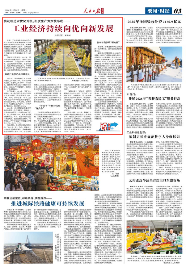 “‘十四五’时期我国工业经济发展取得新的重大成就,韧性强、潜力大、活力足的特征进一步彰显,我们对2026年保持工业经济稳中向好态势充满信心。”工业和信息化部副部长张云明说。