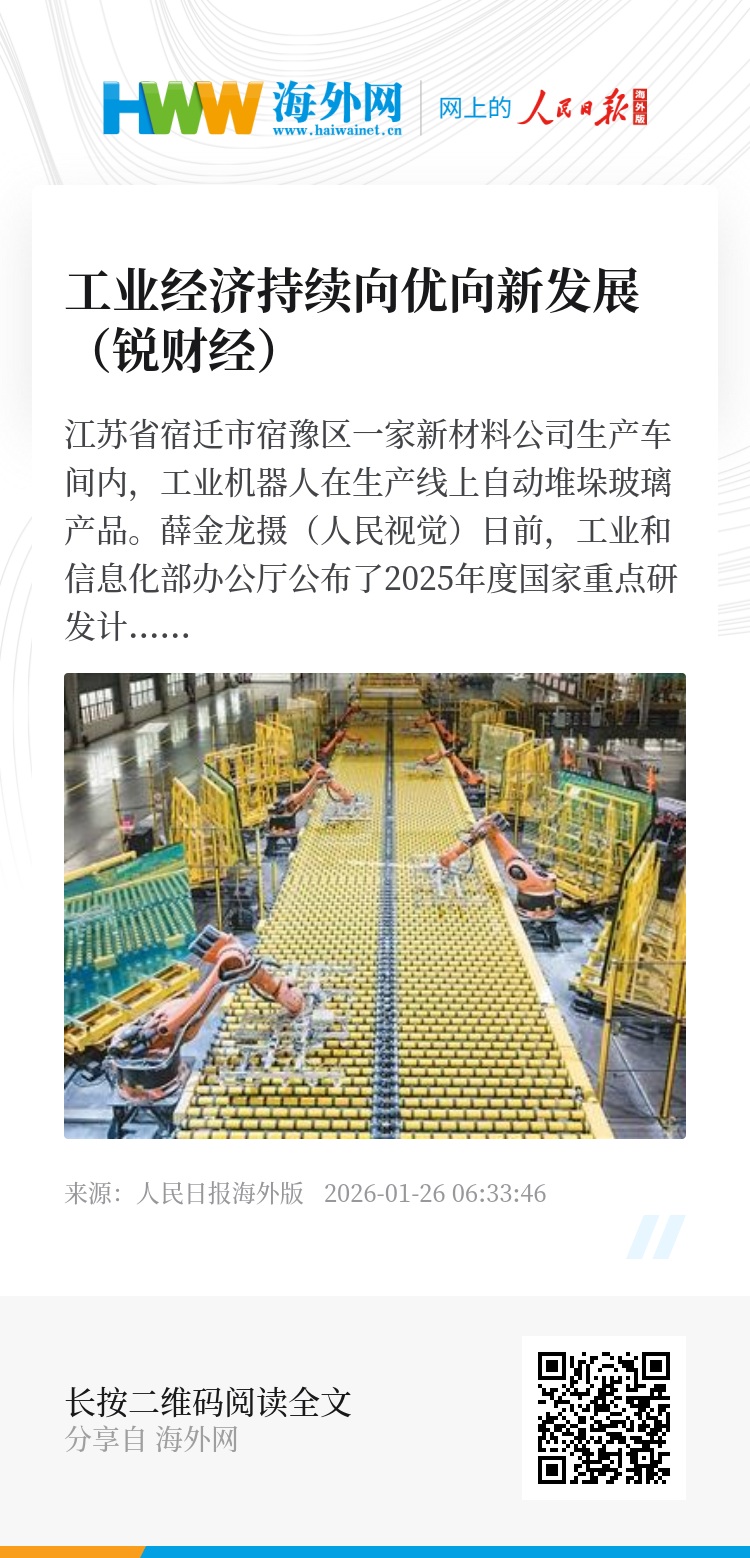 国家统计局表示,2025年,面对国内外形势复杂变化,全国工业生产平稳向好,工业企业出口韧性彰显,企业利润结构改善,装备制造业、高技术制造业较快增长,传统制造业优化升级,新质生产力加快形成,工业经济持续向优向新发展。
