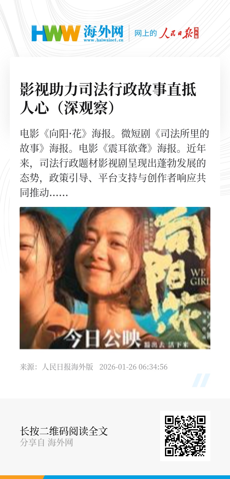 未来,随着创作理念的持续革新与保障机制的日益完善,司法行政故事必将通过更加精彩的影像叙事,在更广泛的人群中播下法治的种子。(何睿 徐嘉伟)