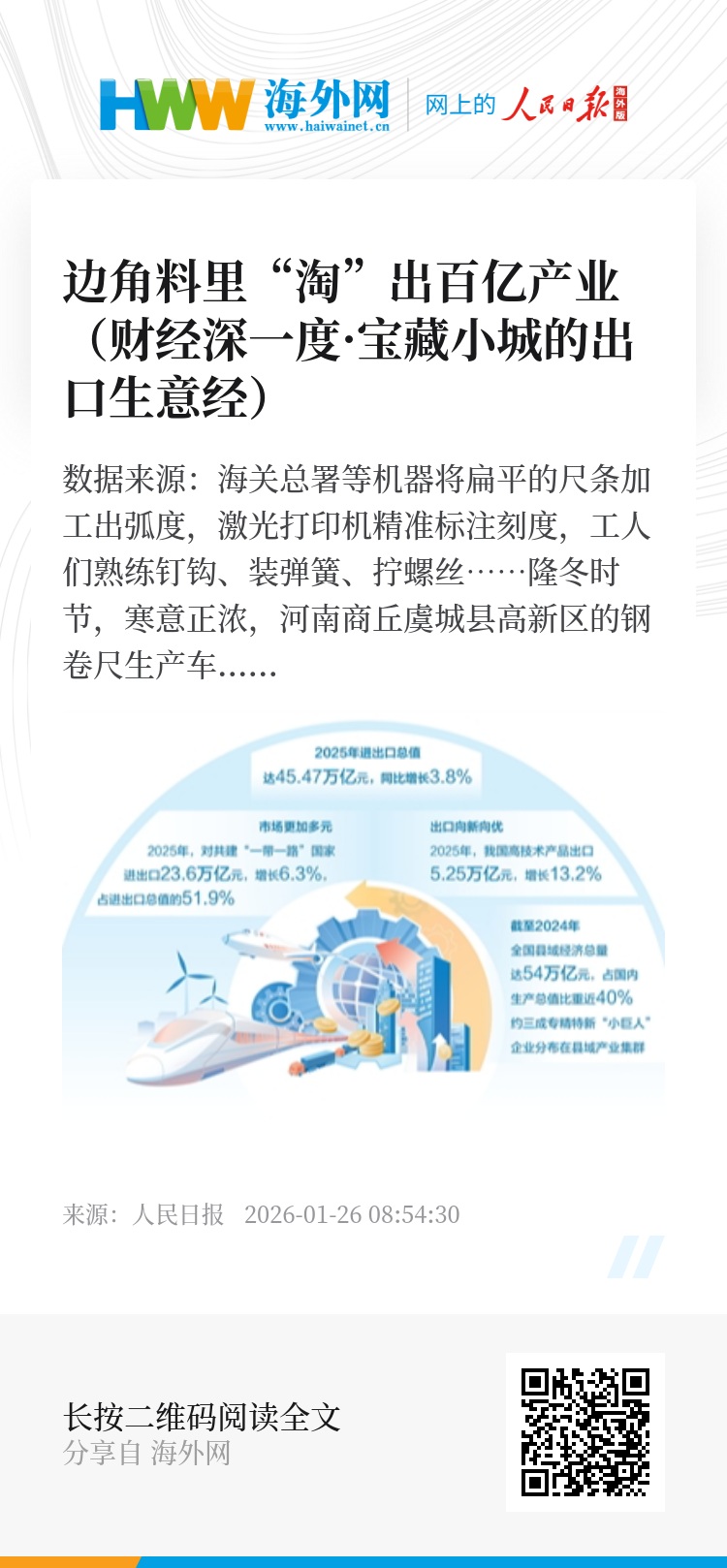 推动中国钢卷尺质检中心落地,为企业应对出口认证提供关键支撑;组织企业参加全球性展会,设立虞城专区助力企业“抱团突围”……多年来,虞城县多措并举助力企业增强品牌知名度,推动产业迈向价值链高端,不断擦亮“虞城钢卷尺”名片。