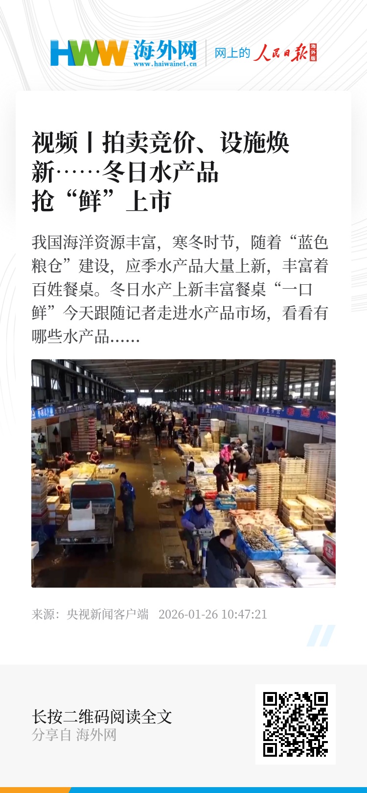 我国海洋资源丰富,寒冬时节,随着“蓝色粮仓”建设,应季水产品大量上新,丰富着百姓餐桌。