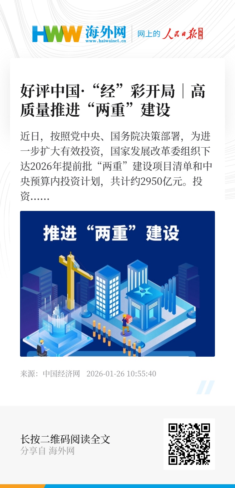 今天的投资,就是明天的竞争力与安全阀。高质量推进“两重”建设,为新时代的“国之大者”提供坚实支撑,未来将源源不断地创造新供给、激发新需求,从而有效增强国内大循环内生动力和可靠性,为发展聚能蓄力。(中国经济网评论员 臧梦雅)