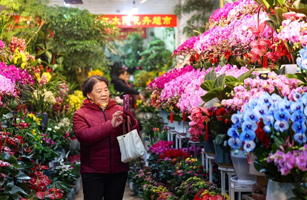 1月24日,在甘肃省兰州市城关区芳草园花卉市场,市民选购花卉。新华社发(侯崇慧摄)