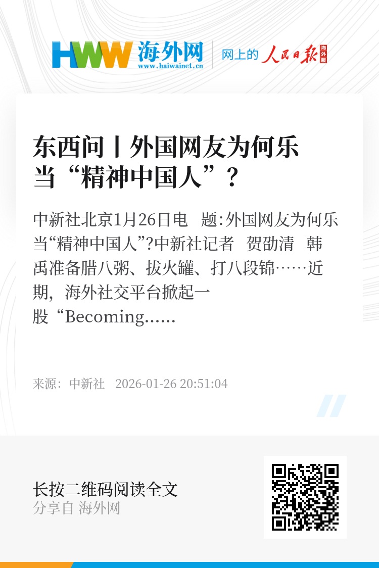 中新社北京1月26日电 题:外国网友为何乐当“精神中国人”?