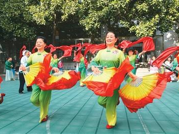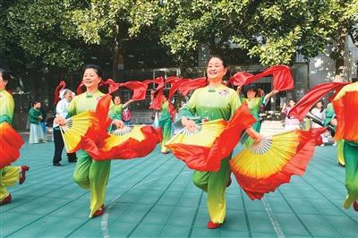 覆盖面日益扩大的养老保险为居民安享晚年生活提供了重要保障。近日,安徽省阜阳市举办的一场春节联欢晚会海选场外,退休职工在排练舞蹈。王彪摄(人民视觉)